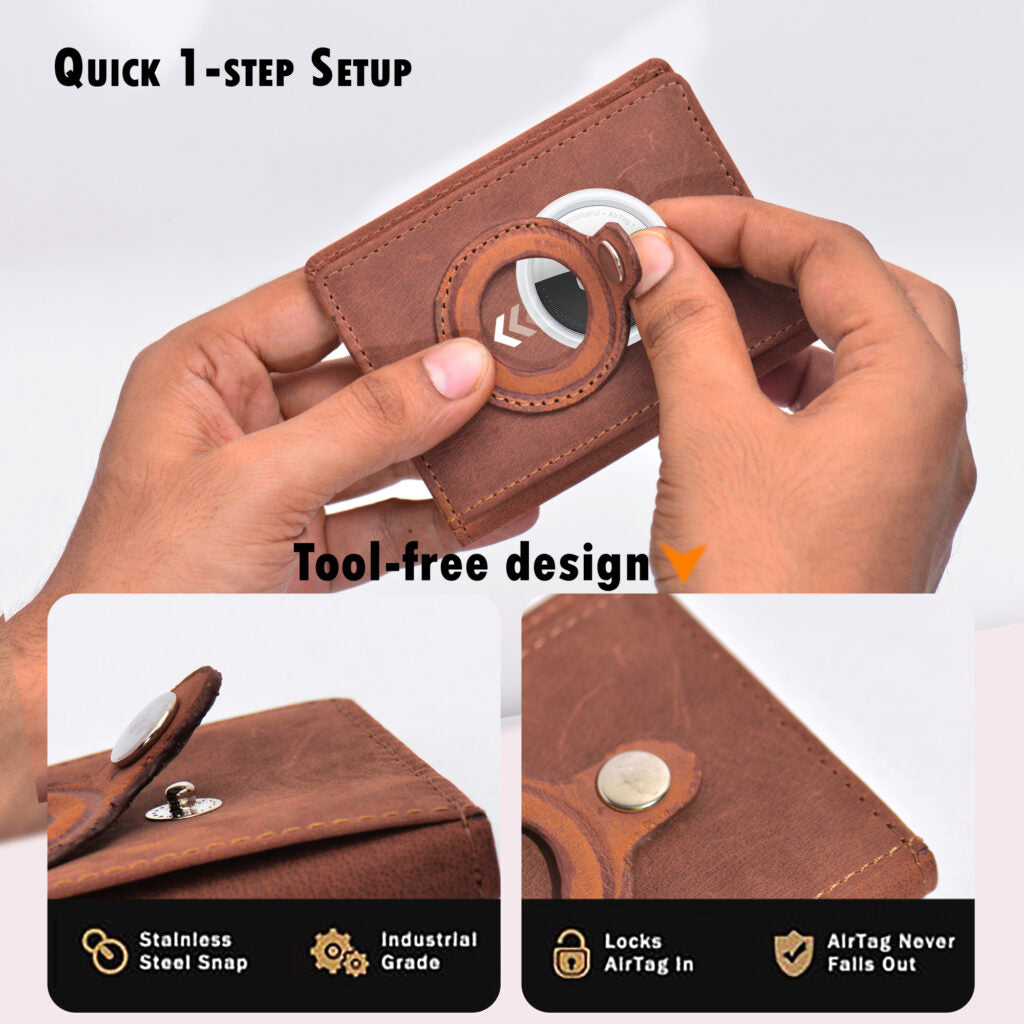- Never worry about loosing your wallet again with our Apple Air Tag compatible Trackable Wallet.