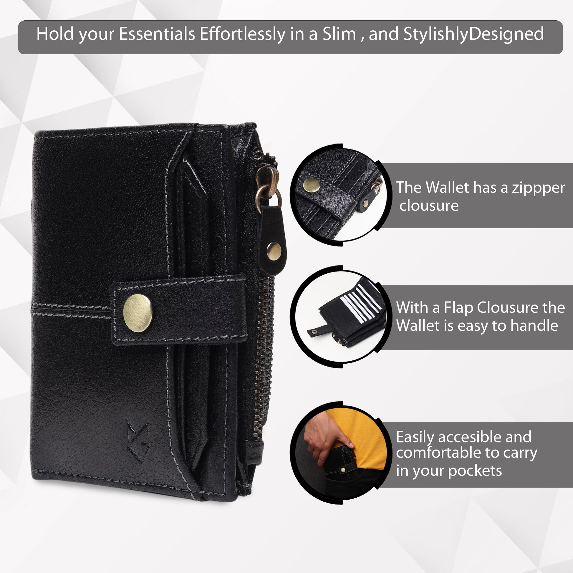 EXTRA SPACE - Our Men’s Zipper Bifold Wallet features 10 Card Slots inside with 2 Cash Compartments & 2 Hidden Pockets with 1 transparent ID Window Pockets. This wallet has a separate detachable card Case outside with 3 Cards Slots including 1 ID Window. Dimensions 11.5 x 9.5 x 2 cm, standard size that will fit any jeans & suits pocket. Good space for your Credit Cards, Money, Bills, Driver License, Business Cards, Photos and Much more.